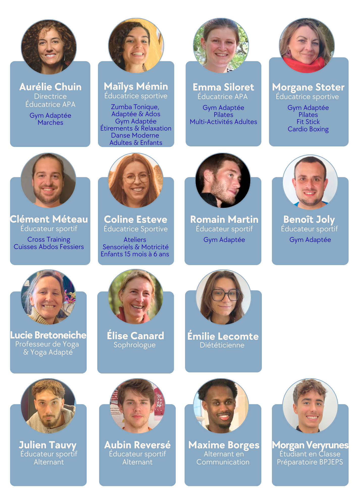 Sa mission principale est de promouvoir la santé et le bien-être à travers la pratique d’Activités Physiques Adaptées, d’activités dédiées au bien-être, ainsi que d’activités physiques toniques, accessibles à tous et encadrées par des professionnels qualifiés.