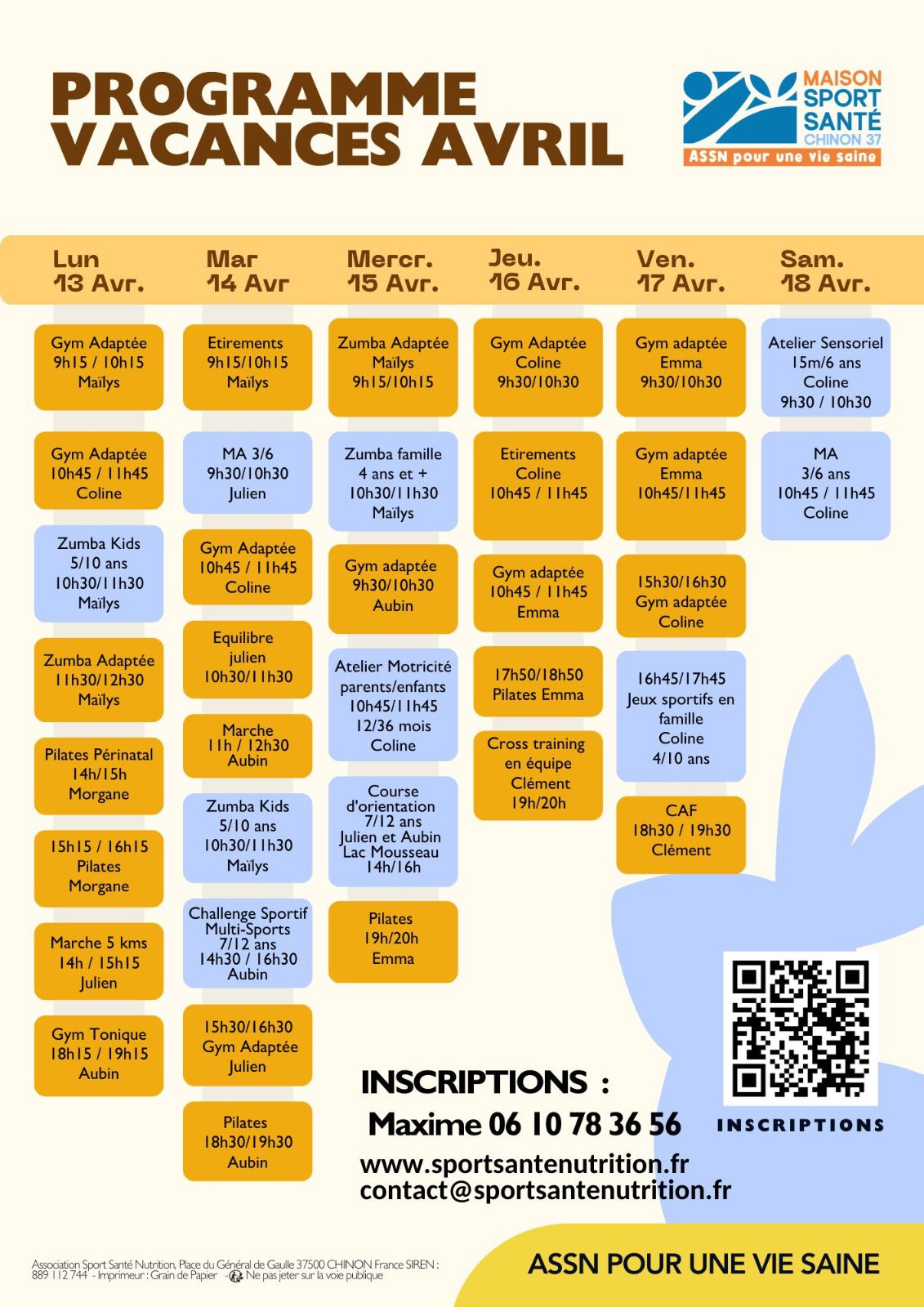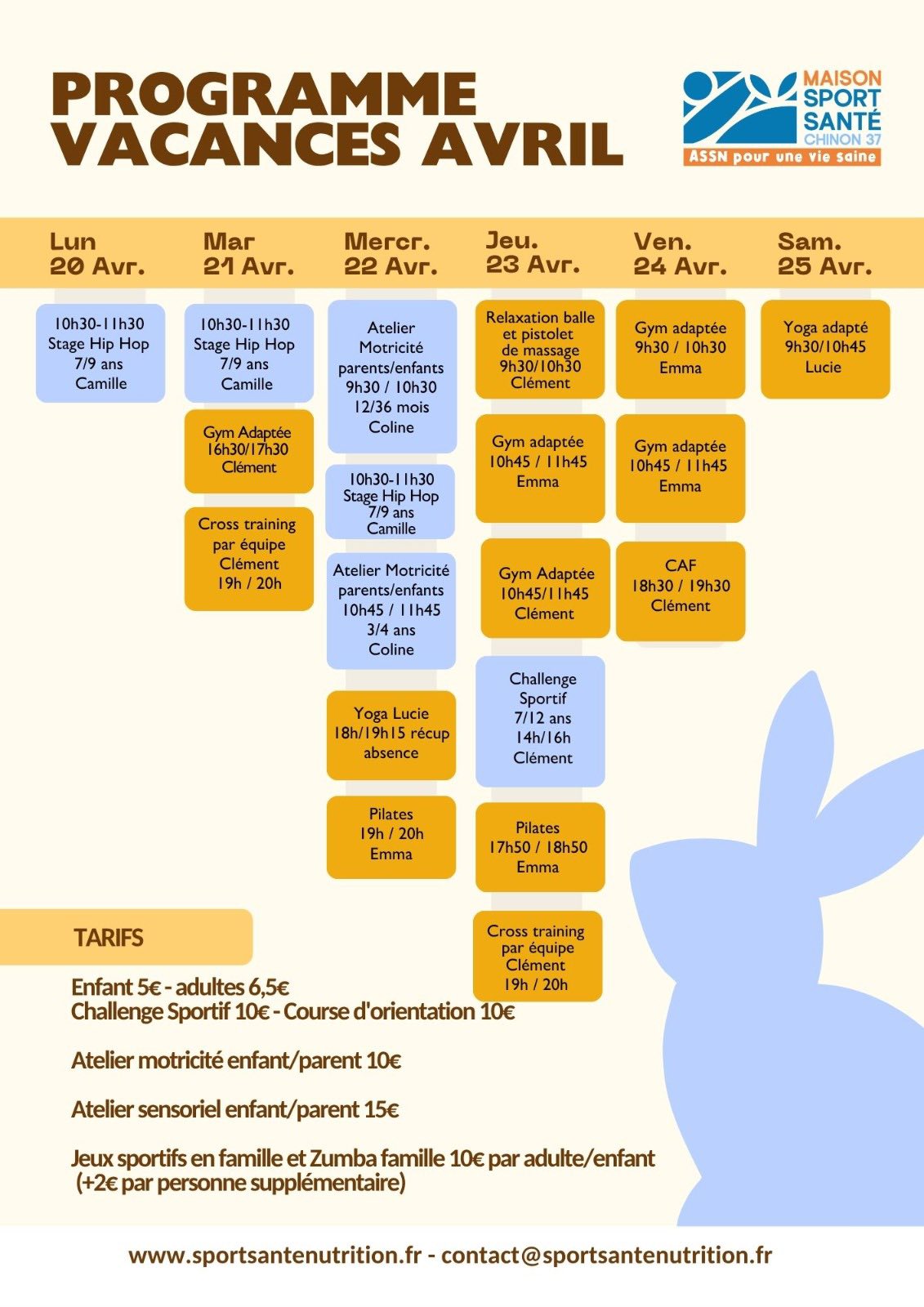 Programme du Lundi 13 au Samedi 25 Mars 2026 / Inscriptions et paiements à l’avance obligatoires