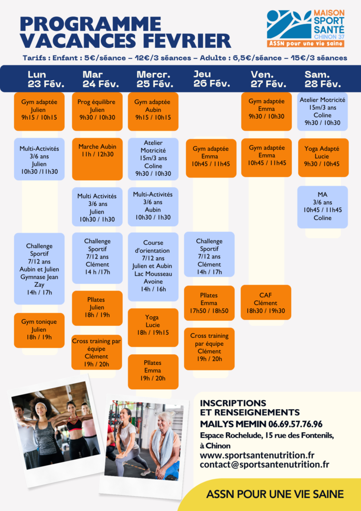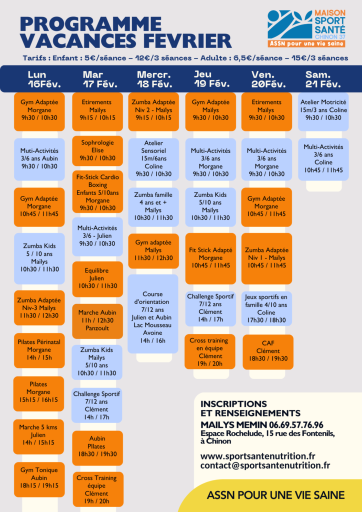 Programme du Lundi 16 au Vendredi 27 février 2026/ Inscriptions et paiements à l’avance obligatoires