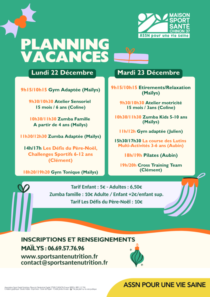Lundi 22 et 23 décembre 2025/ Inscriptions et paiements à l’avance obligatoires