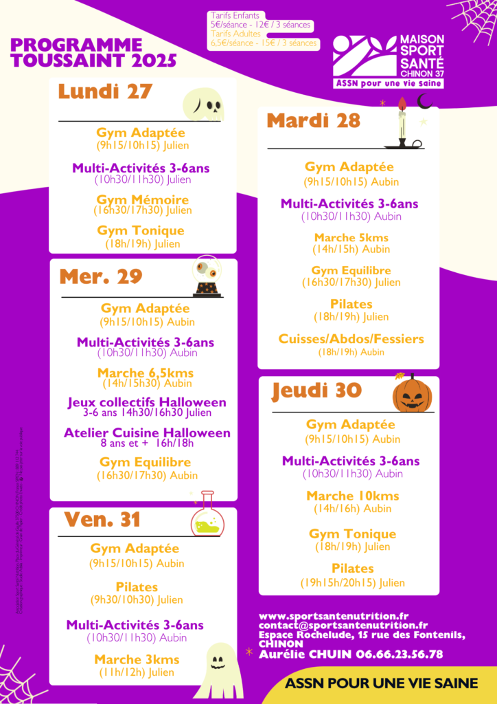 Du 20 au 26 Octobre 2025/ Inscriptions et paiements à l’avance obligatoires